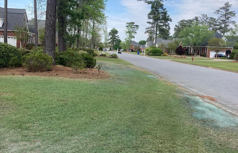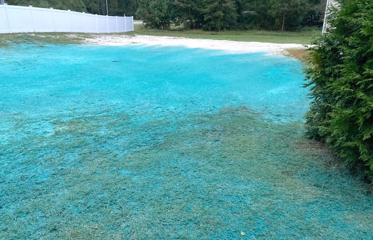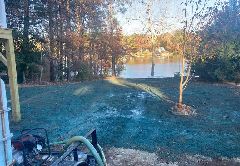 What will my lawn look like after the hydroseed is applied? Depending upon the application needed, you will see the green tinted mulch which contains the germinated seed. Bare ground, or more sparsely grassed areas, will be more visible. The above lawns were overseeded to improve lushness, and a heavier application was applied to the barren areas.